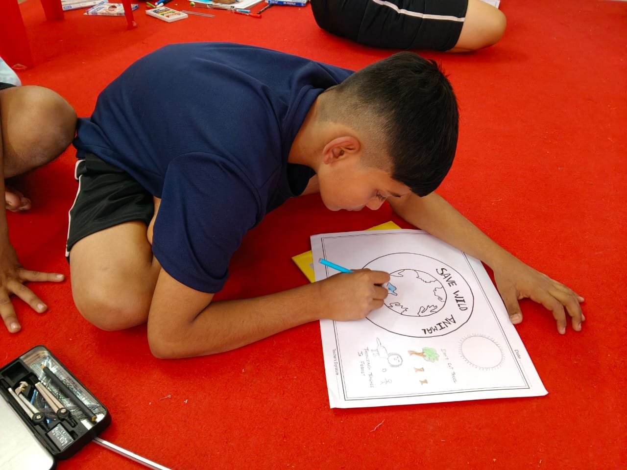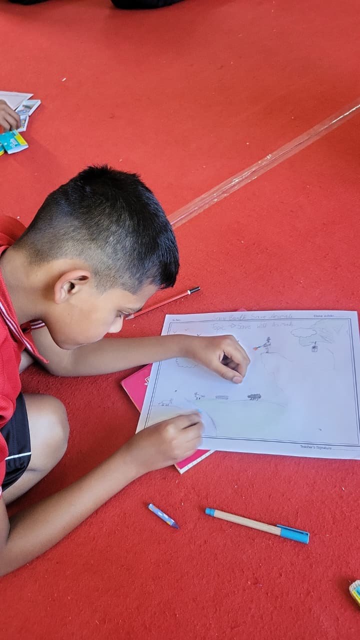 Students from all houses participated enthusiastically and showcased their artistic skills through colorful and meaningful posters. The posters on Vijay Diwas highlighted bravery, patriotism, and the sacrifice of Indian soldiers, while those on Save Wild Animals spread the message of wildlife conservation and environmental responsibility.