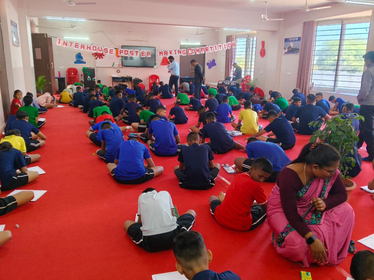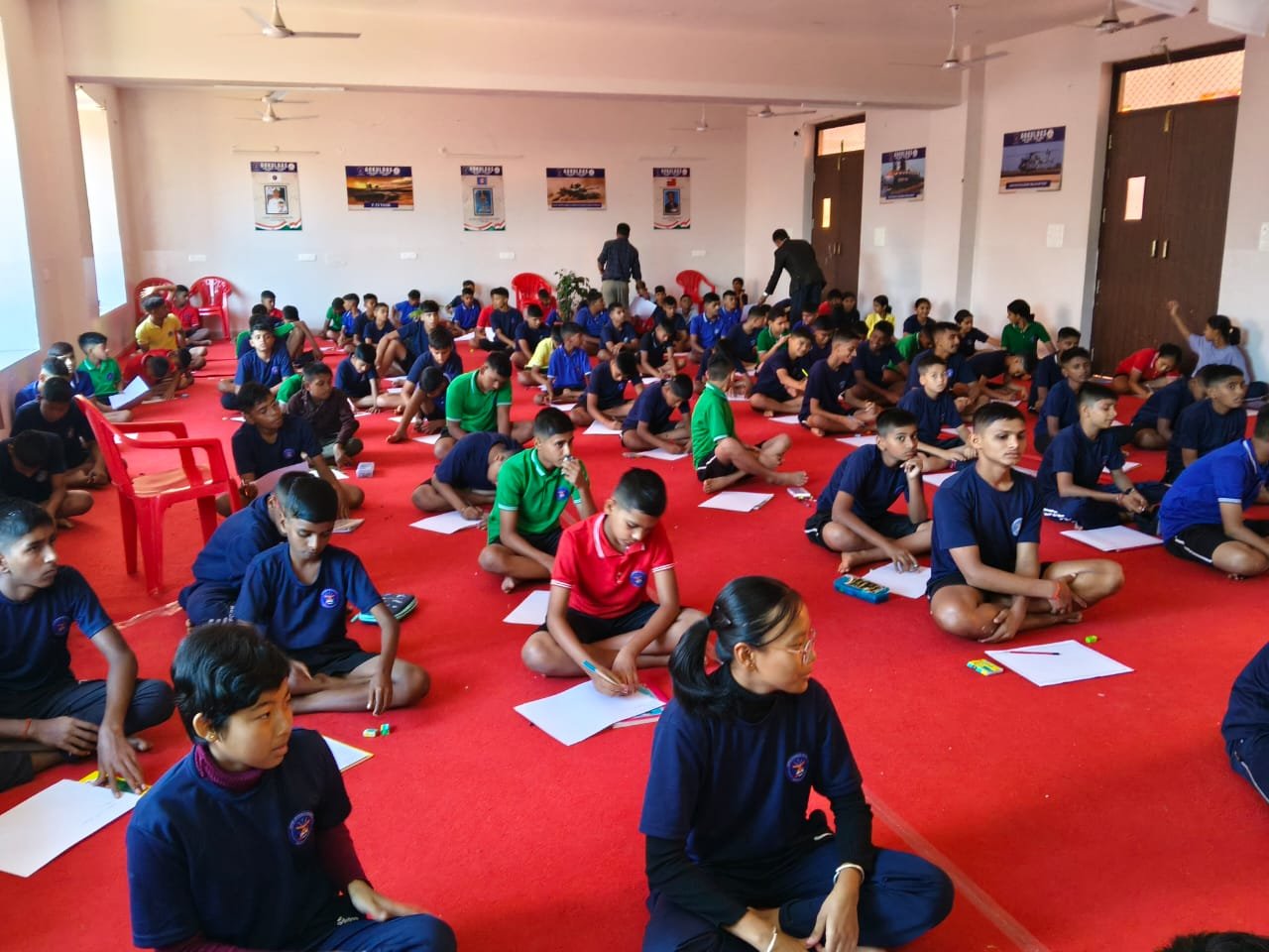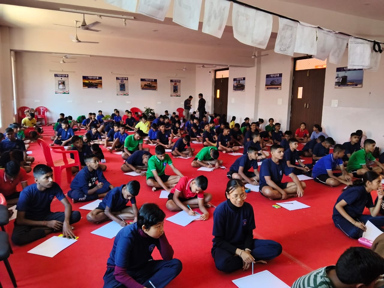 An Inter-House Poster Making Competition was held on 12/12/25 at Gokuldas Sainik School, Khargone. The competition aimed to encourage creativity and awareness among students. The topics given were “Vijay Diwas” and “Save Wild Animals.”