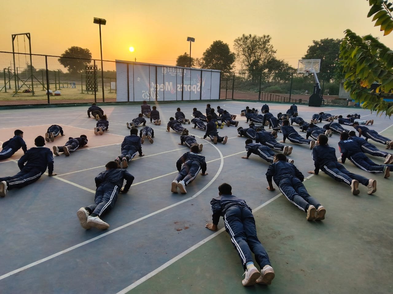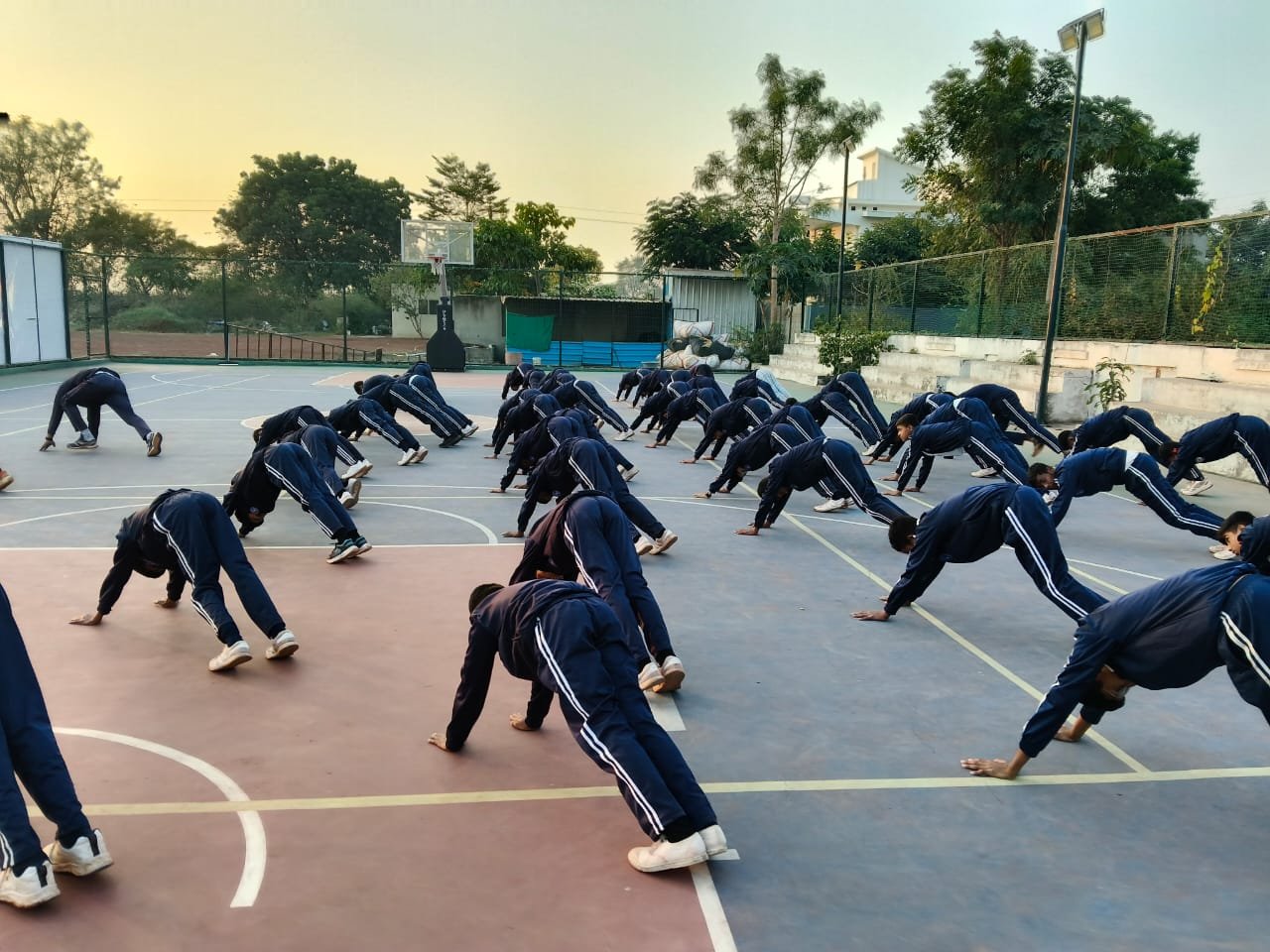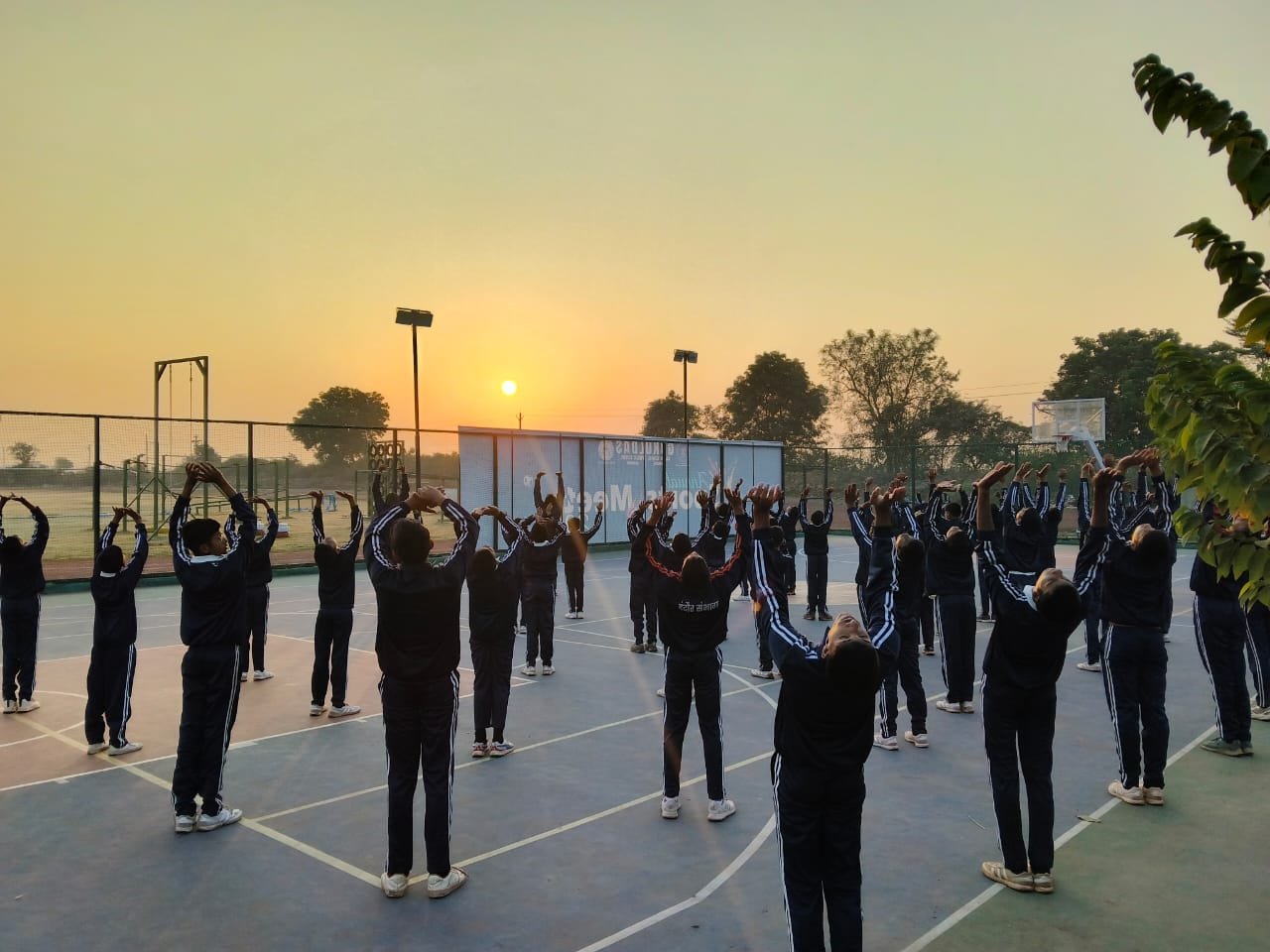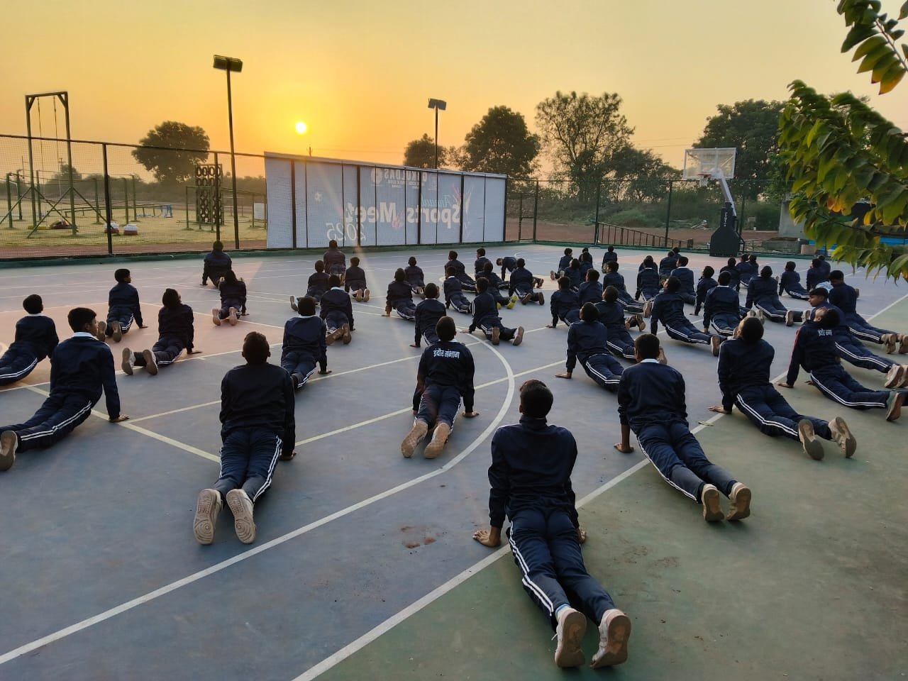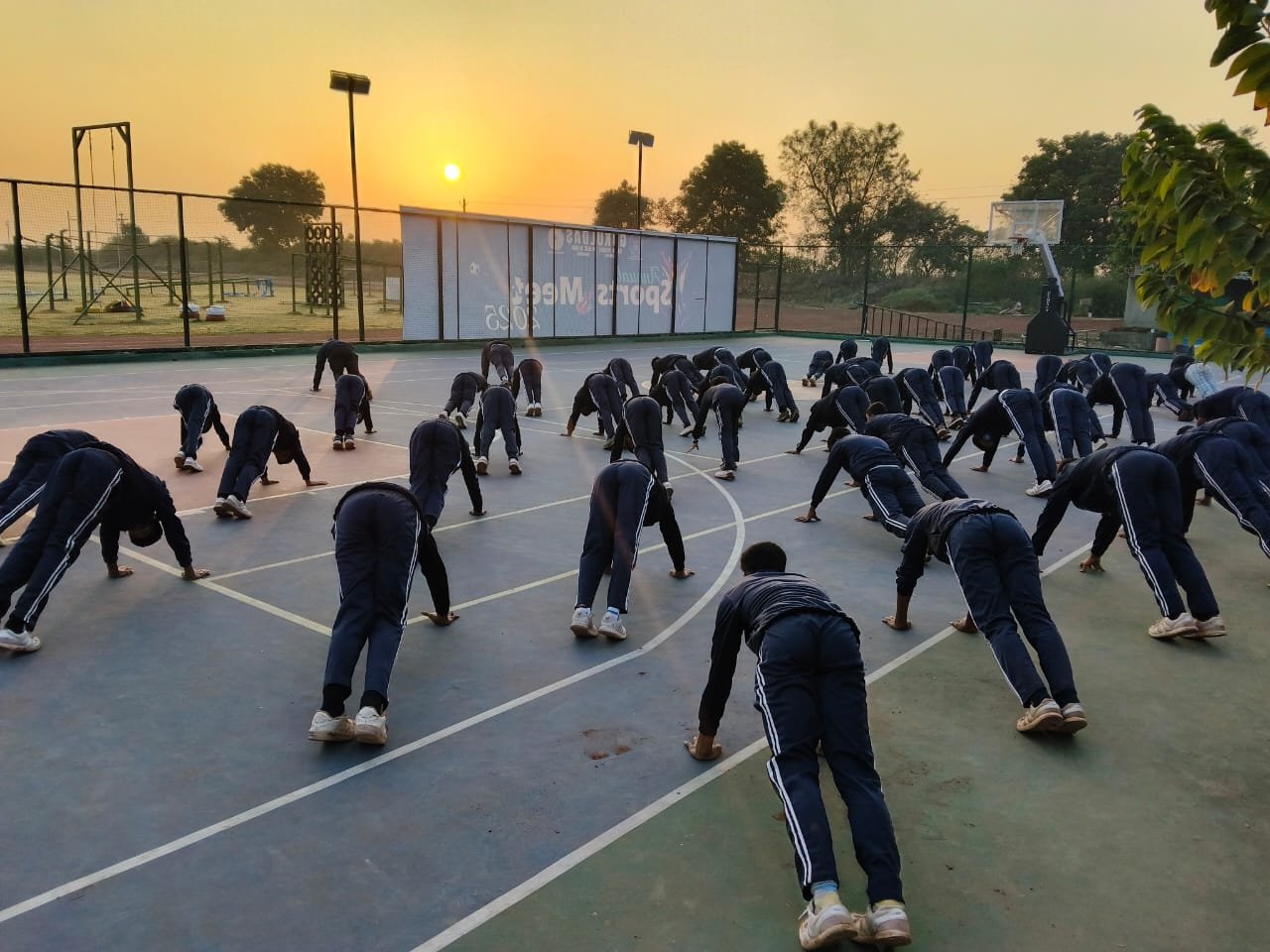 “Surya Namaskar session on National Youth Day conducted by PTI Mr. Prabhat Patel and Mr. Vivek with cadets.”