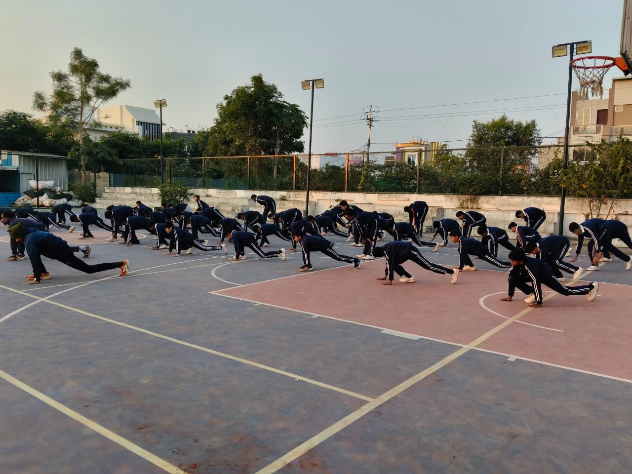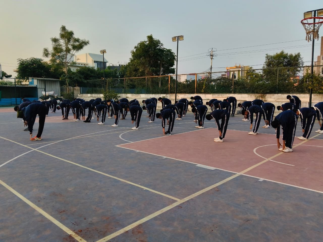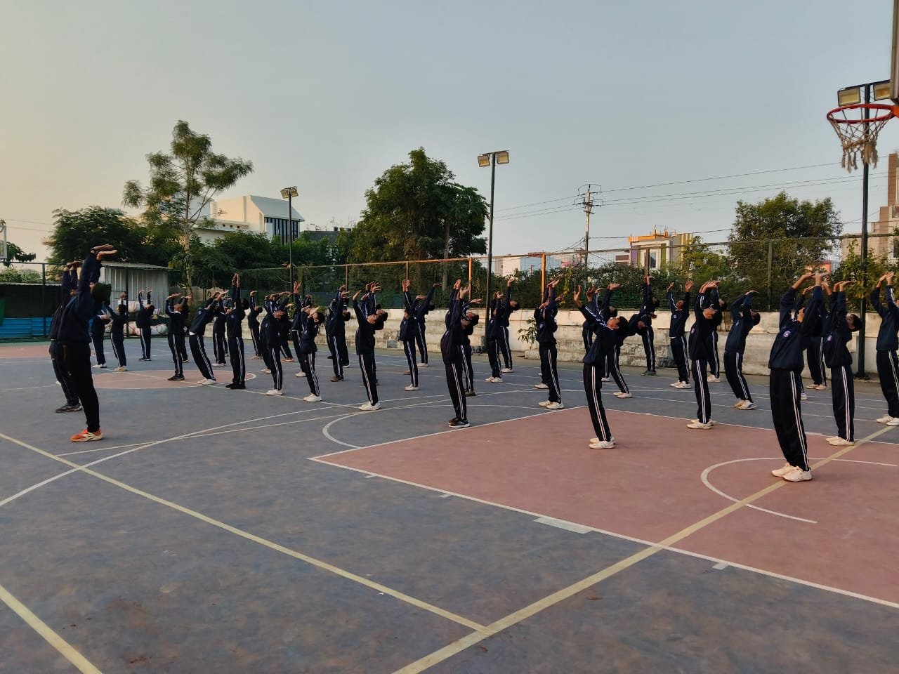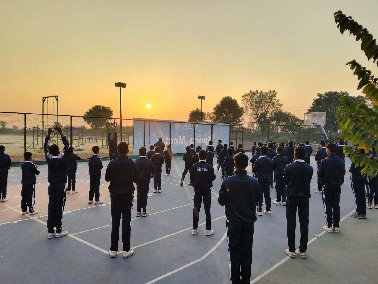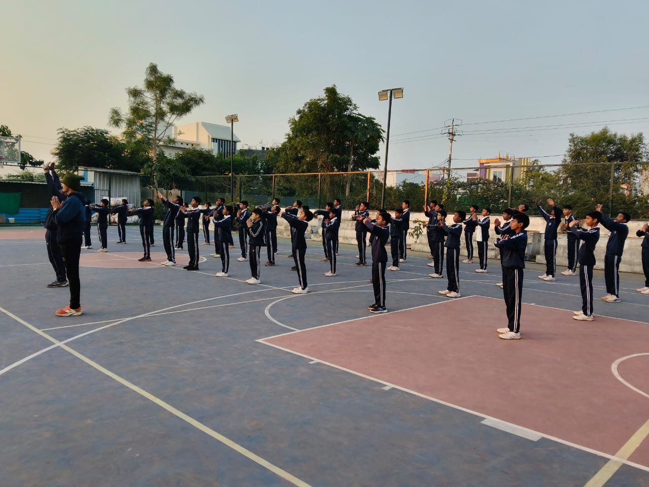 “Surya Namaskar session on National Youth Day conducted by PTI Mr. Prabhat Patel and Mr. Vivek with cadets.”