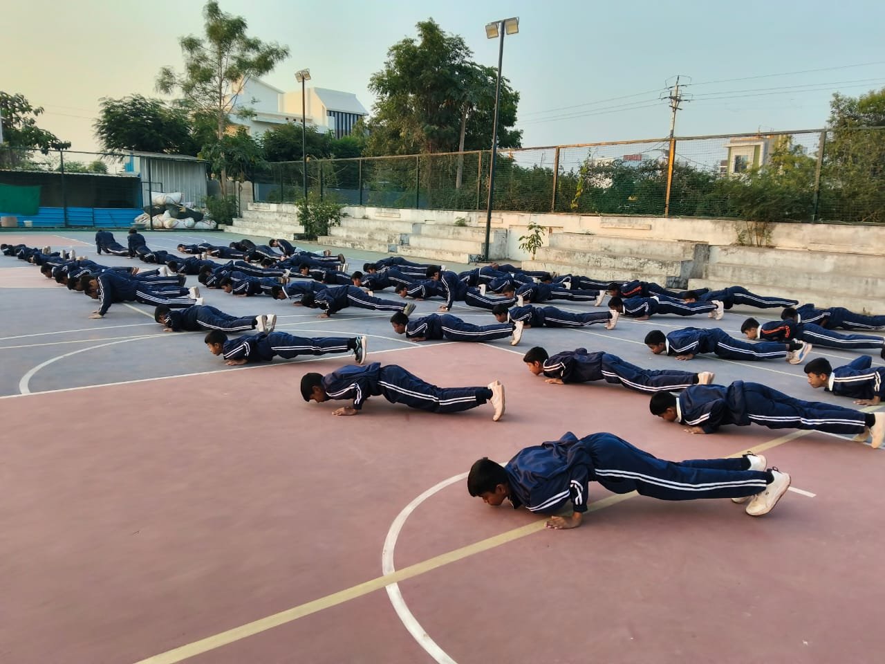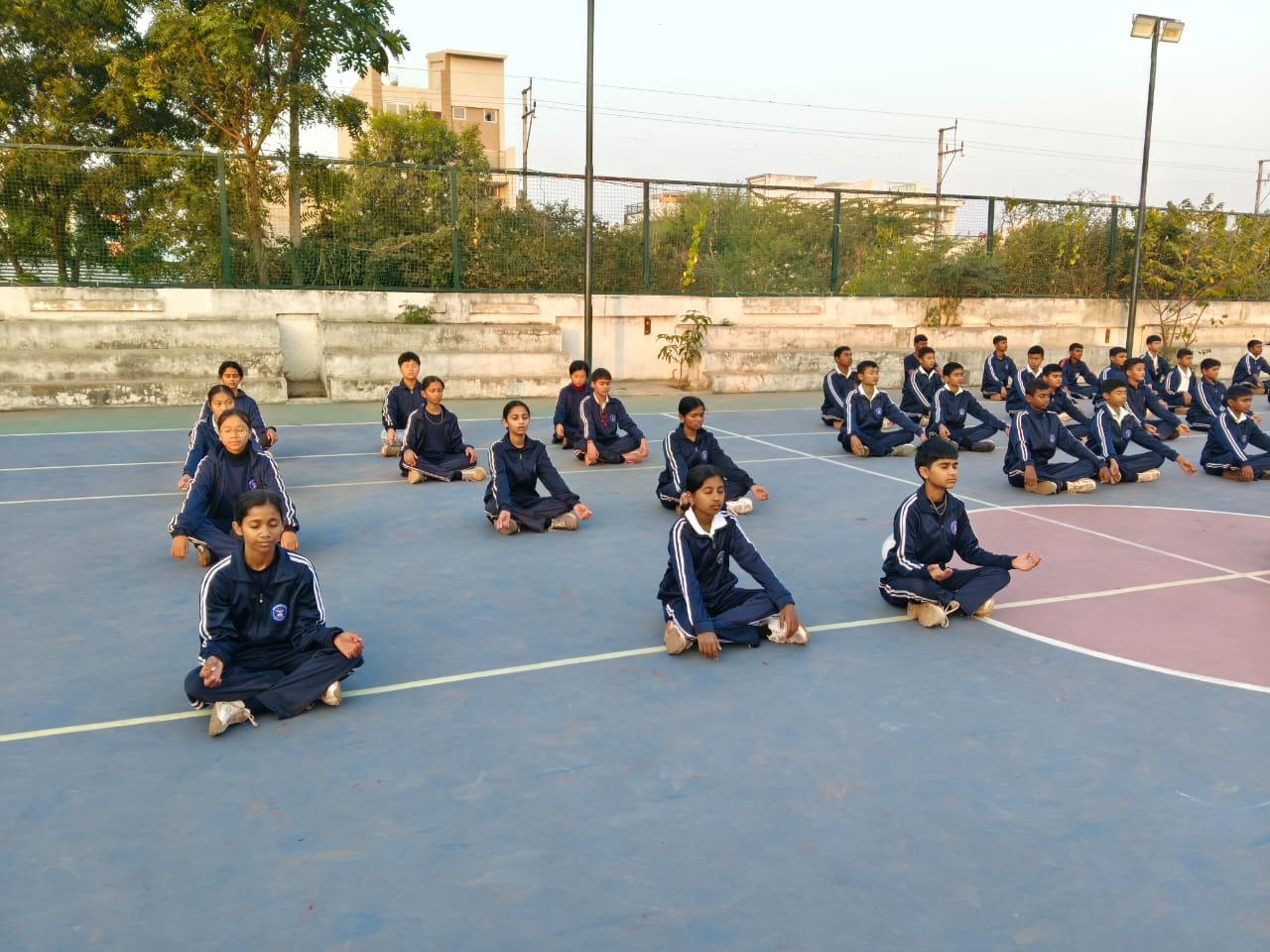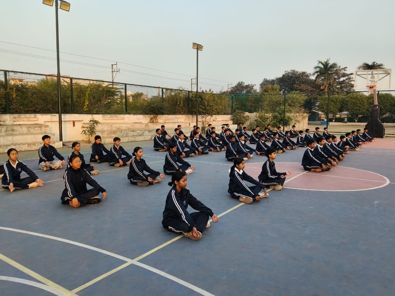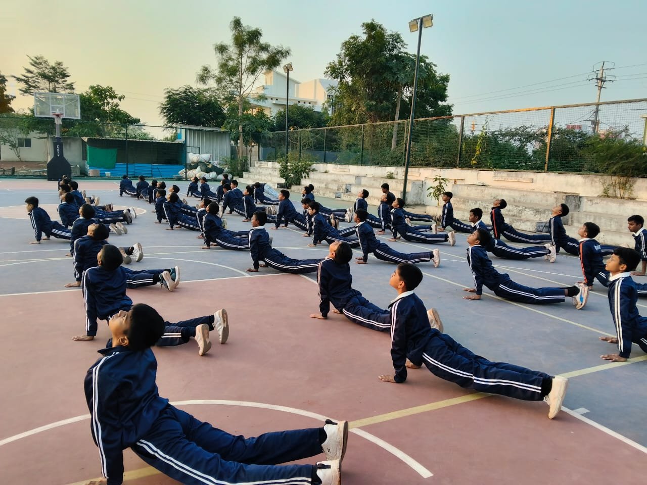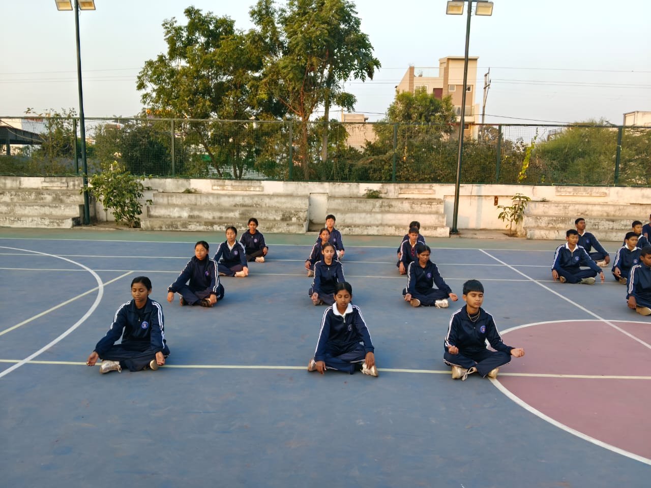 “Surya Namaskar session on National Youth Day conducted by PTI Mr. Prabhat Patel and Mr. Vivek with cadets.”